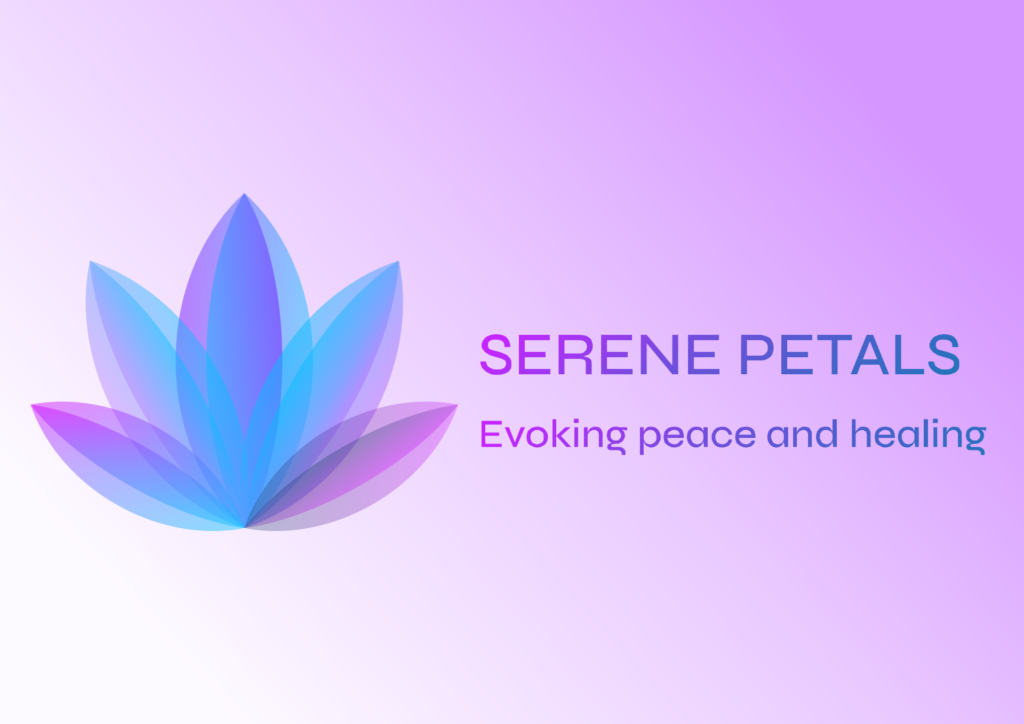 The logo gracefully embodies tranquility with its elegant design. A flower with layered petals for wellness, and sophistication