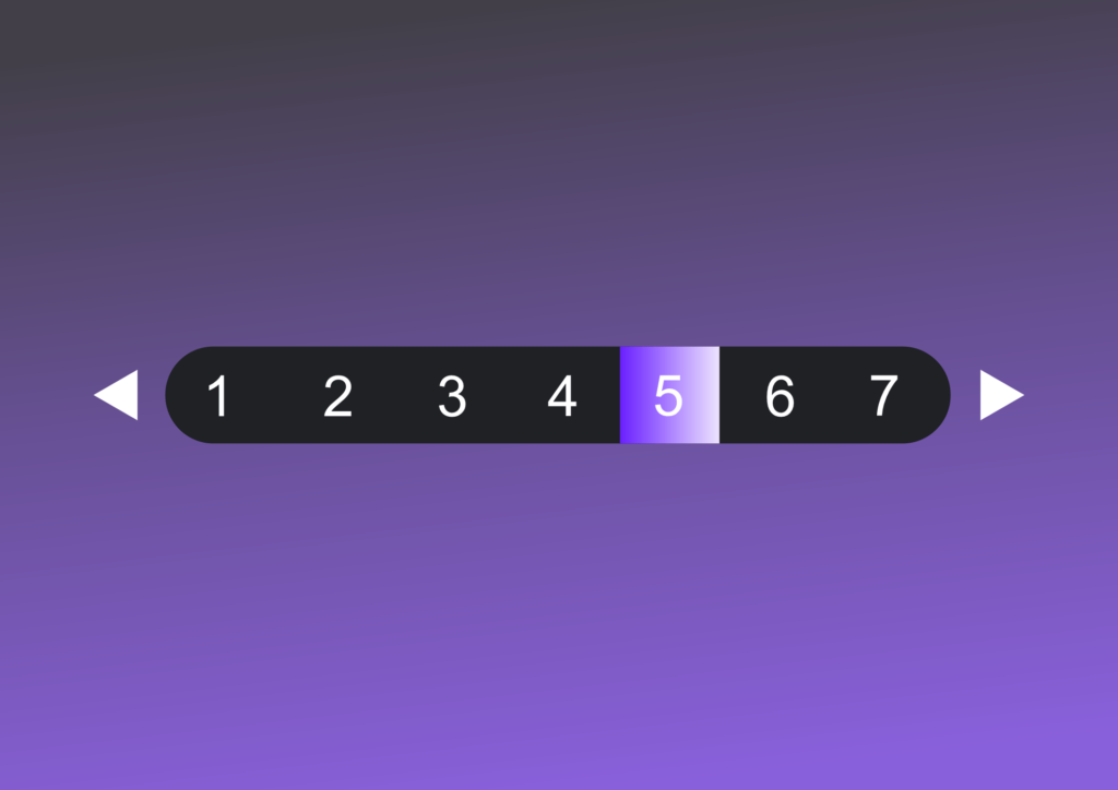 Gradient-highlighted numerical slider, designed for seamless value selection within a predefined range, ideal for pagination controls